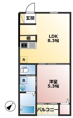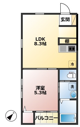 洋室 5.3帖/LDK 8.3帖 - 向き